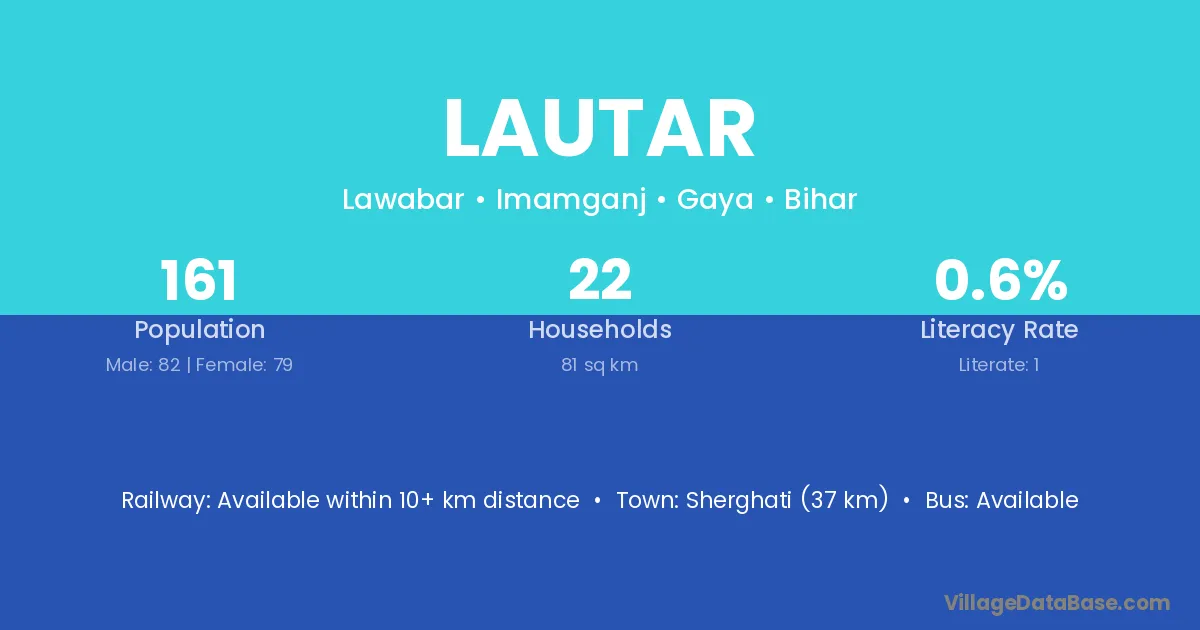 Sherghati (37 km) is the nearest town to Lautar village for major economic activities and is located approximately 37 km away.
