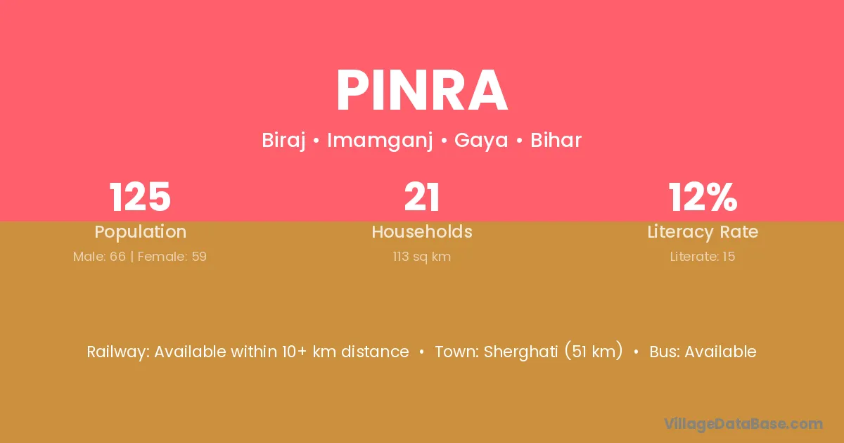 Sherghati (51 km) is the nearest town to Pinra village for major economic activities and is located approximately 51 km away.