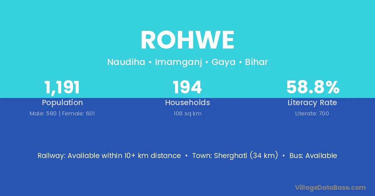 Sherghati (34 km) is the nearest town to Rohwe village for major economic activities and is located approximately 34 km away.