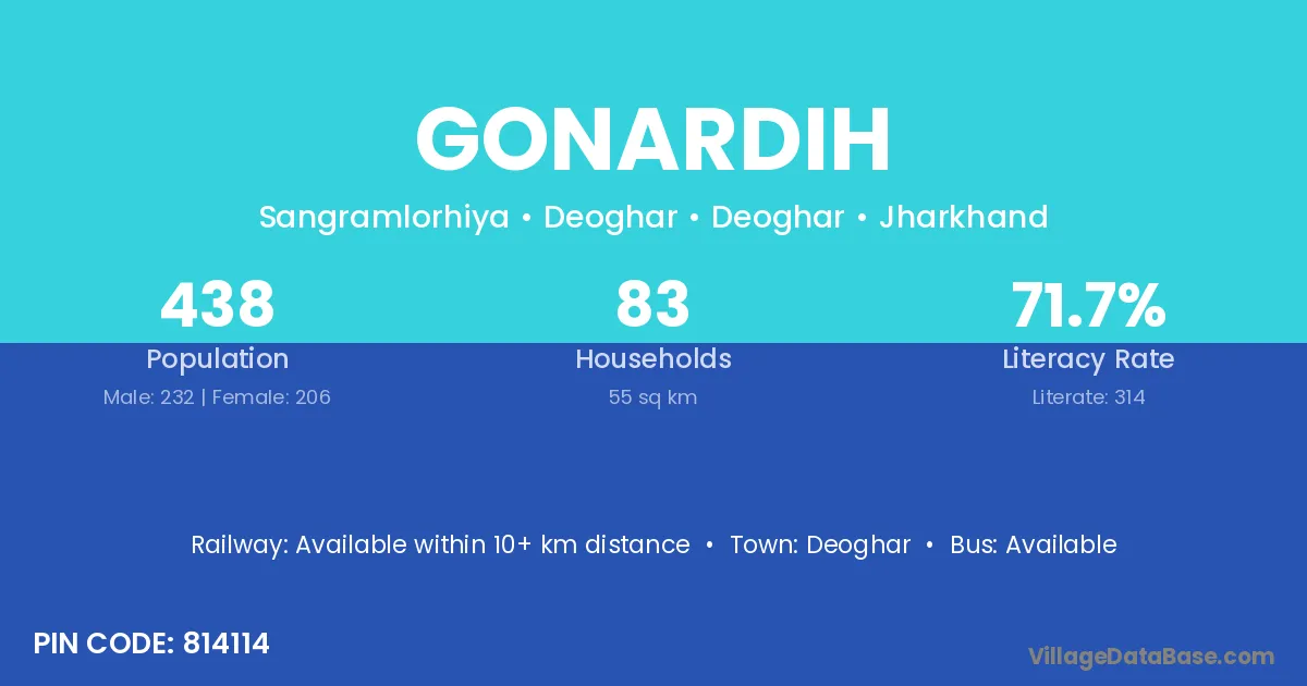 Gonardih village has a total population of 514 people, of which 251 are males and 263 are females.