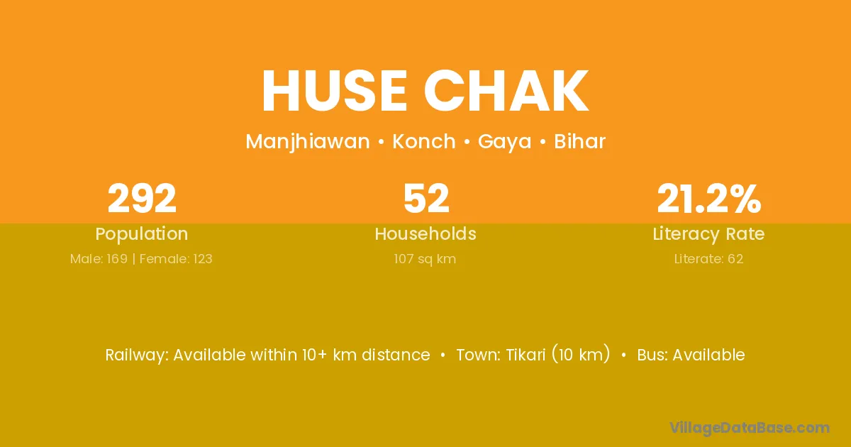 Tikari (10 km) is the nearest town to Huse Chak village for major economic activities and is located approximately 10 km away.