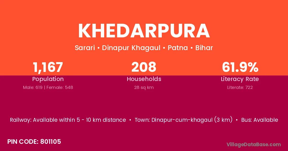 Gaya (12 km) is the nearest town to Khedarpura village for major economic activities and is located approximately 12 km away.