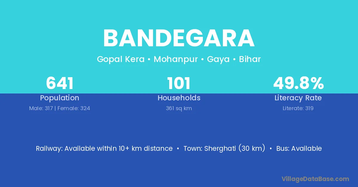 Sherghati (30 km) is the nearest town to Bandegara village for major economic activities and is located approximately 30 km away.