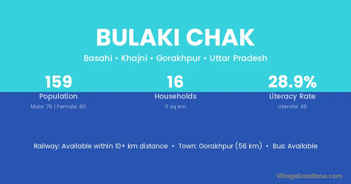 Bulaki Chak village has a total population of 349 people, of which 155 are males and 194 are females.