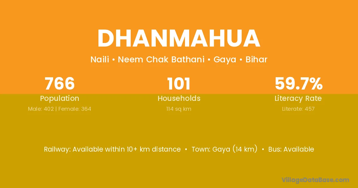 Gaya (14 km) is the nearest town to Dhanmahua village for major economic activities and is located approximately 14 km away.