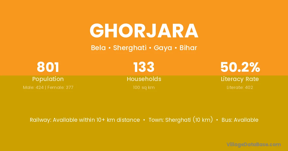 Sherghati (10 km) is the nearest town to Ghorjara village for major economic activities and is located approximately 10 km away.