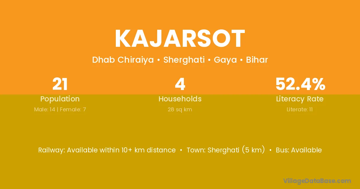 Sherghati (5 km) is the nearest town to Kajarsot village for major economic activities and is located approximately 5 km away.