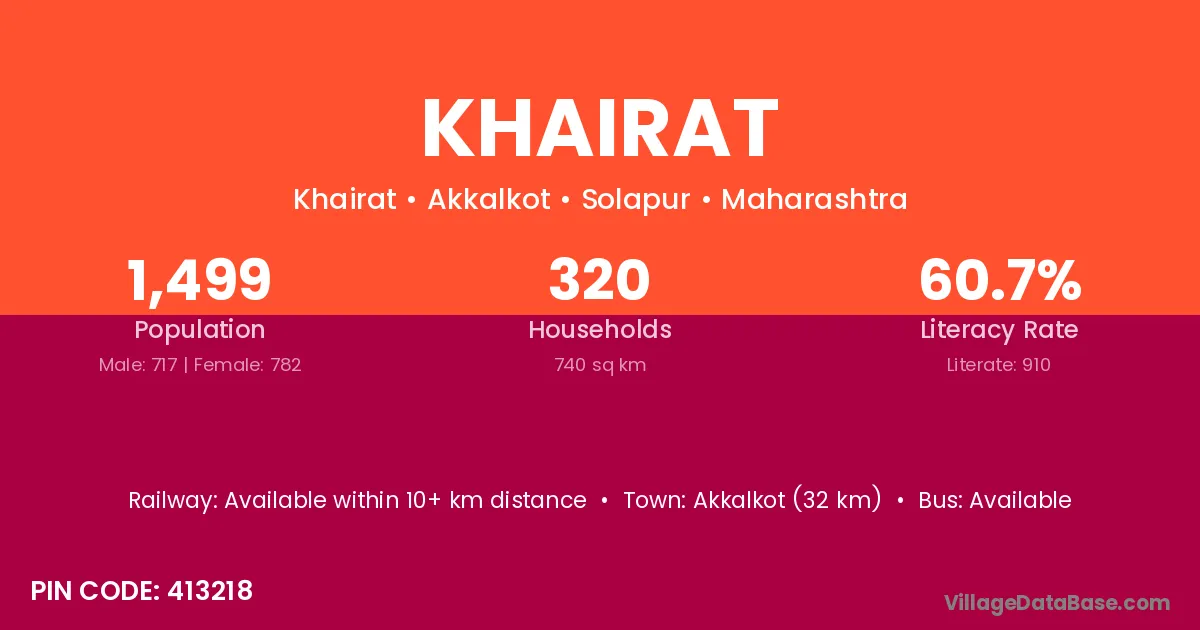 The literacy rate of Khairat village is 58.85%. Male literacy stands at 62.34% and female literacy at 55.31%.