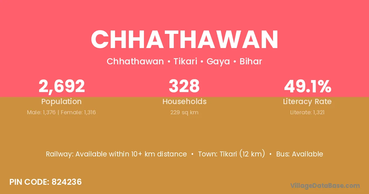 Tikari (12 km) is the nearest town to Chhathawan village for major economic activities and is located approximately 12 km away.