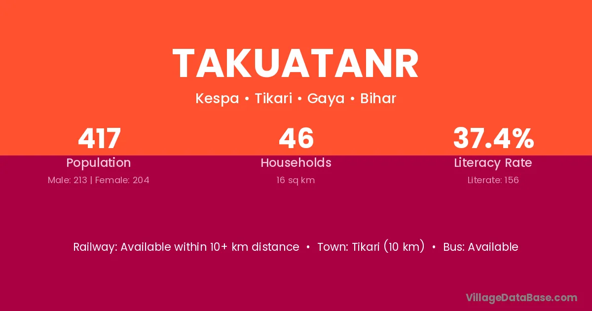 Takuatanr village has a total population of 417 people, of which 213 are males and 204 are females.