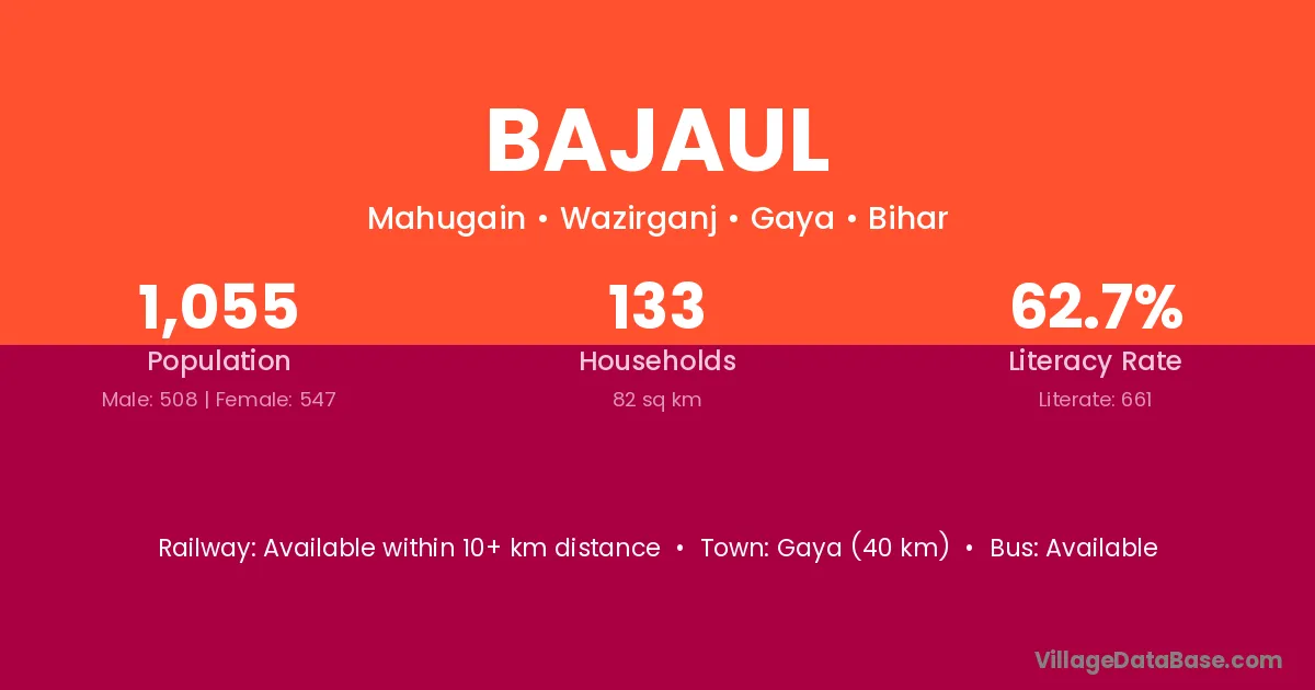 Gaya (40 km) is the nearest town to Bajaul village for major economic activities and is located approximately 40 km away.
