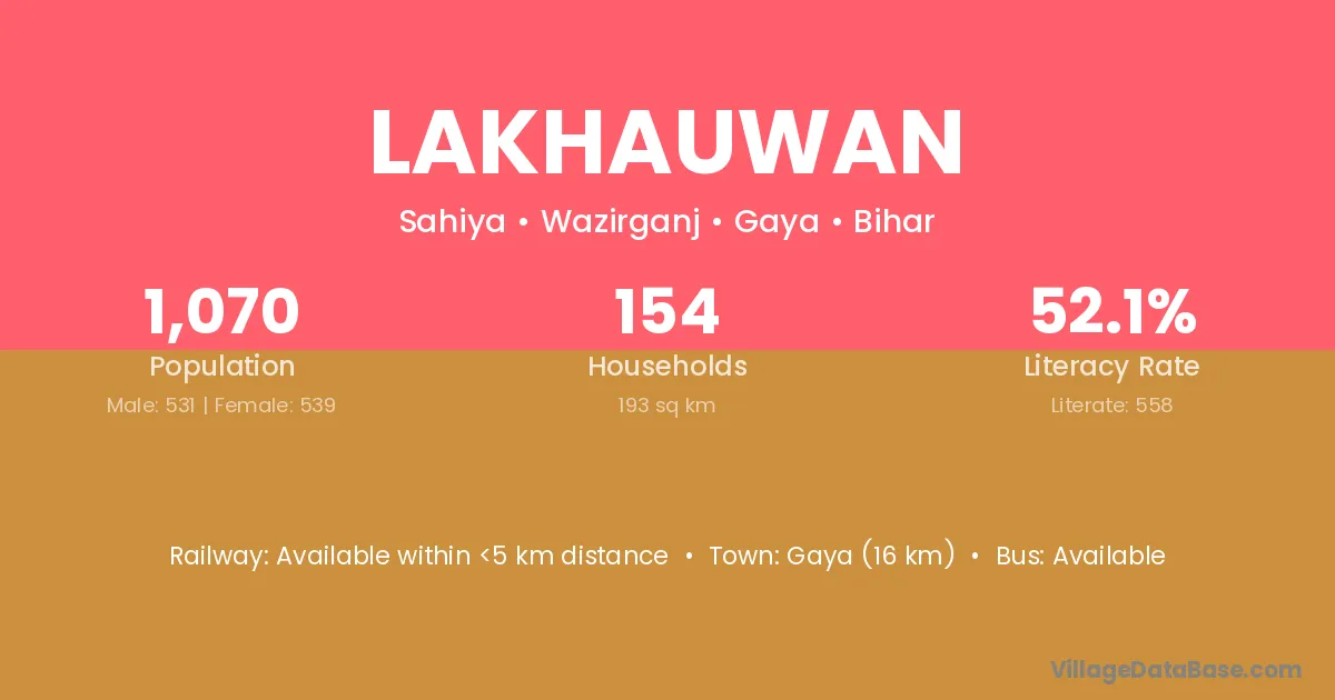 Lakhauwan village has a total population of 1,070 people, of which 531 are males and 539 are females.
