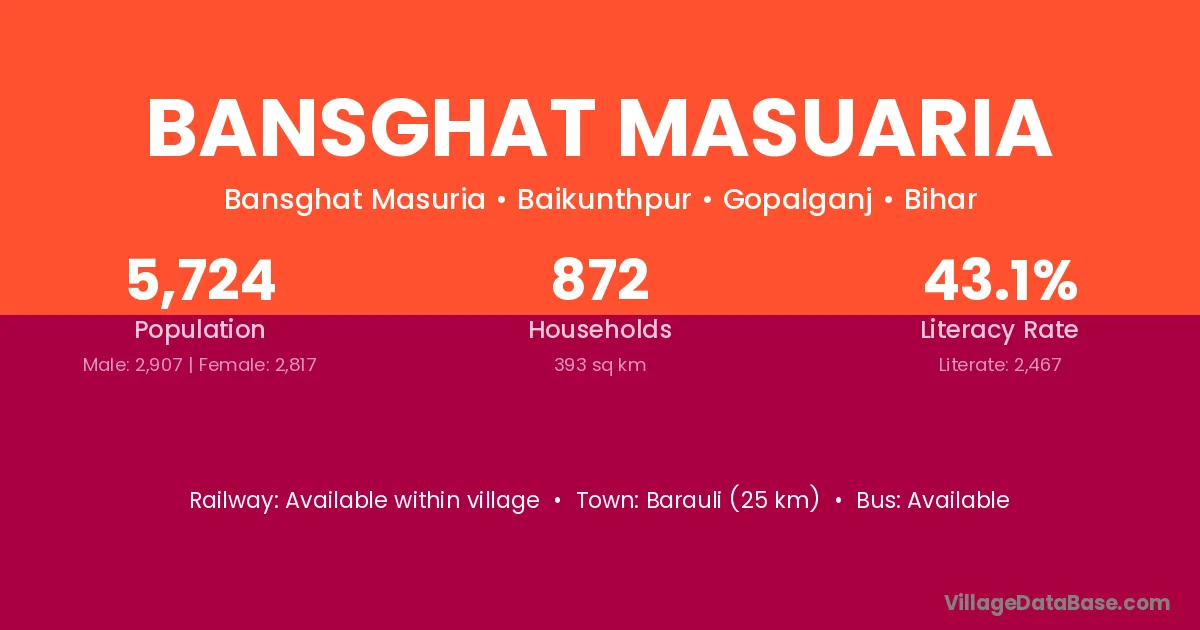 Bansghat Masuaria village is located in the Baikunthpur Subdivision of the Gopalganj district in Bihar .