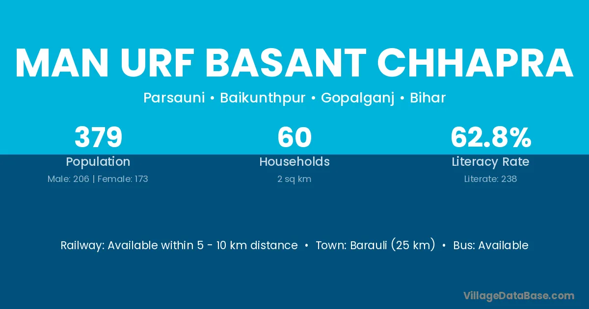 Man Urf Basant Chhapra village has a total population of 379 people, of which 206 are males and 173 are females.