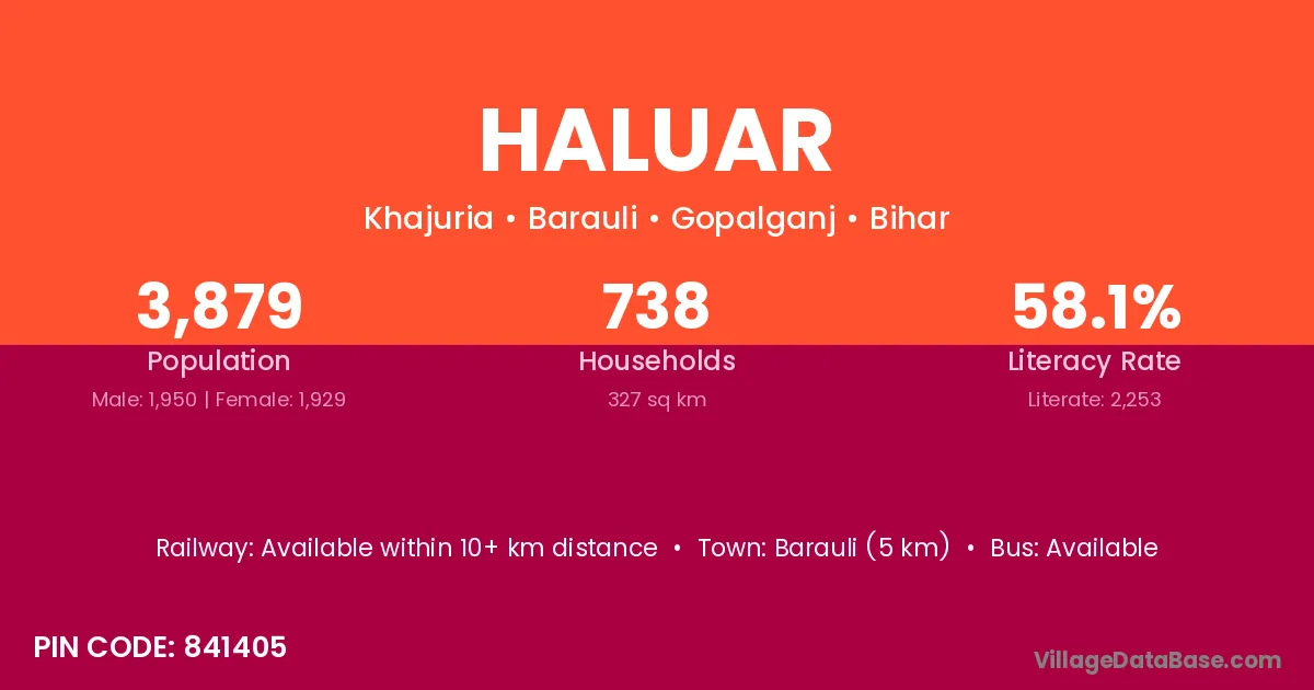 Barauli (5 km) is the nearest town to Haluar village for major economic activities and is located approximately 5 km away.