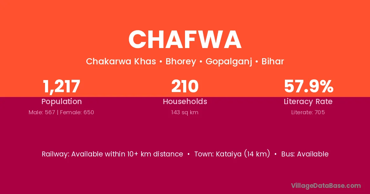 Kataiya (14 km) is the nearest town to Chafwa village for major economic activities and is located approximately 14 km away.