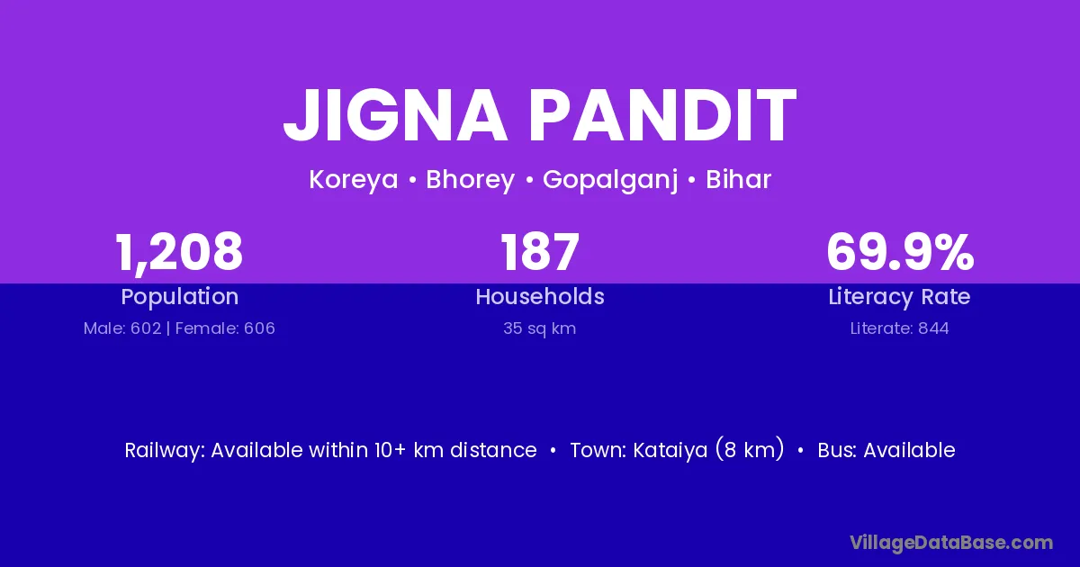 Kataiya (8 km) is the nearest town to Jigna Pandit village for major economic activities and is located approximately 8 km away.