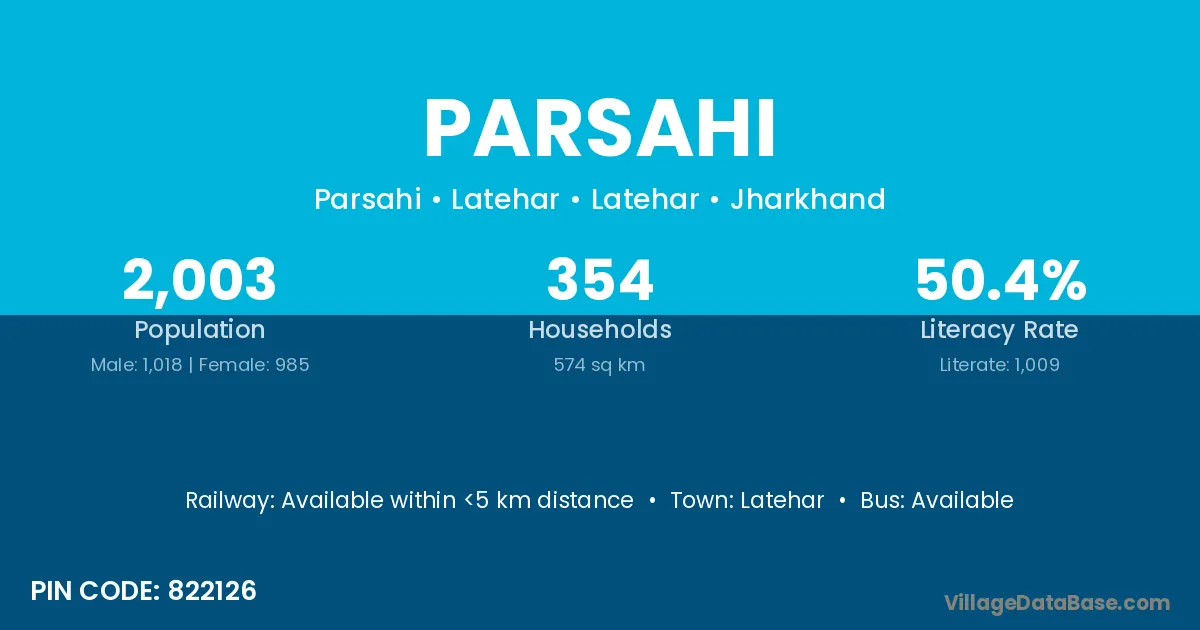 Katia (16 km) is the nearest town to Parsahi village for major economic activities and is located approximately 16 km away.