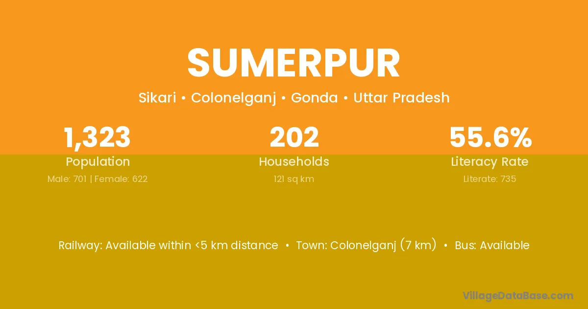 The literacy rate of Sumerpur village is 41.10%. Male literacy stands at 48.59% and female literacy at 34.73%.