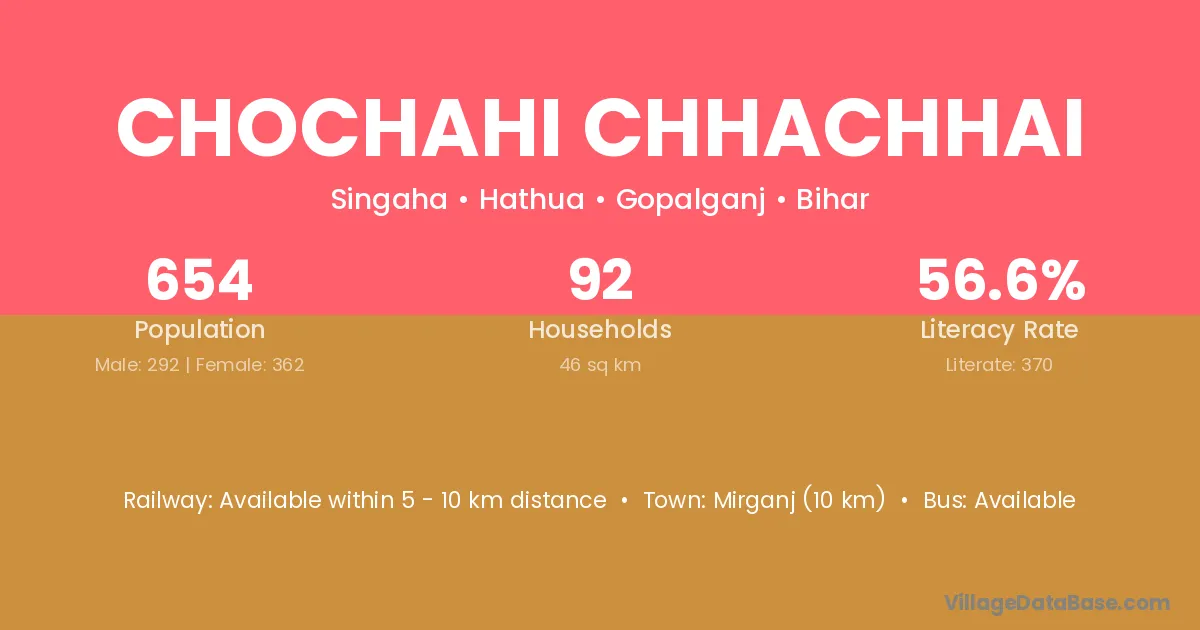 Mirganj (10 km) is the nearest town to Chochahi Chhachhai village for major economic activities and is located approximately 10 km away.
