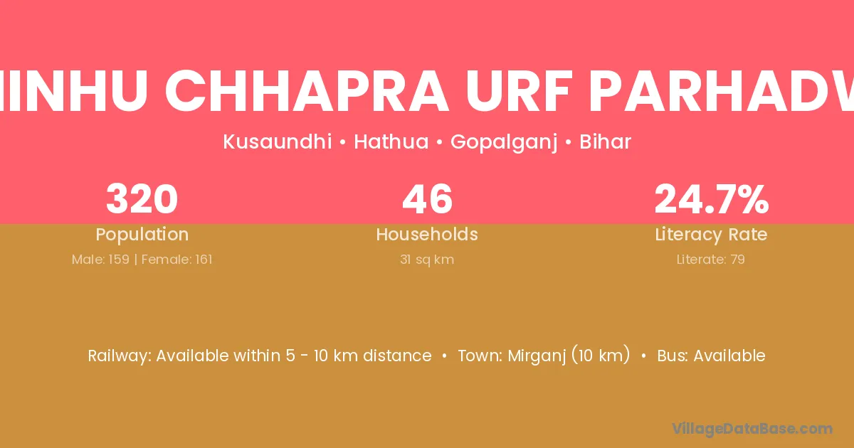 Ghinhu Chhapra Urf Parhadwa village has a total population of 320 people, of which 159 are males and 161 are females.