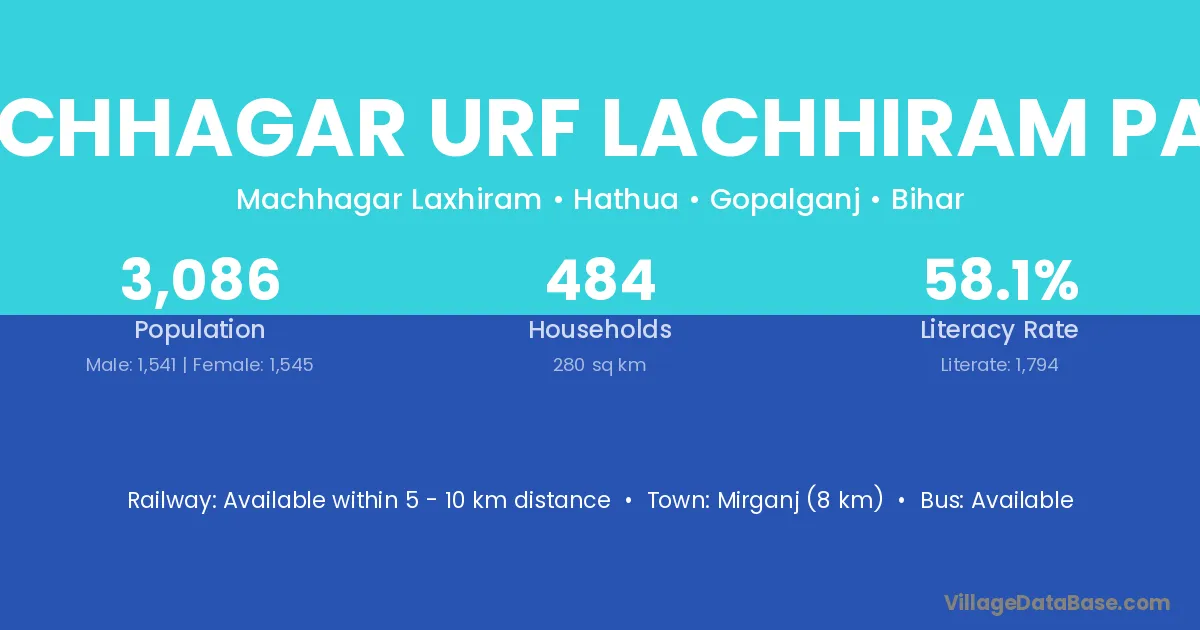 Machhagar Urf Lachhiram Patti village has a total population of 3,086 people, of which 1,541 are males and 1,545 are females.