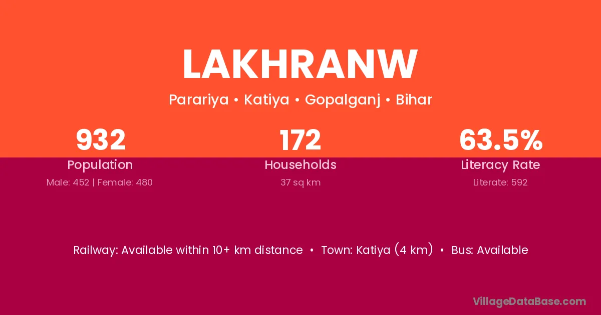 Katiya (4 km) is the nearest town to Lakhranw village for major economic activities and is located approximately 4 km away.