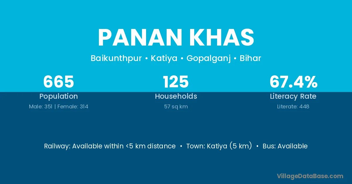 Katiya (5 km) is the nearest town to Panan Khas village for major economic activities and is located approximately 5 km away.