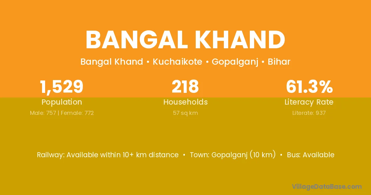 Bangal Khand village has a total population of 1,529 people, of which 757 are males and 772 are females.