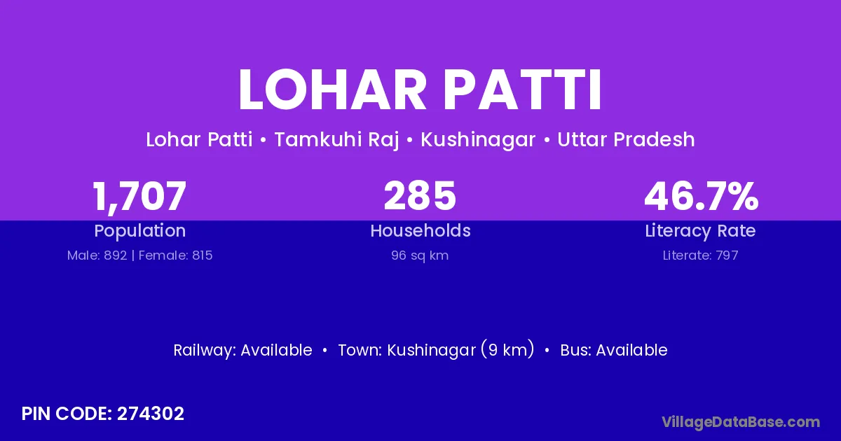 Gopalganj (21 km) is the nearest town to Lohar Patti village for major economic activities and is located approximately 21 km away.