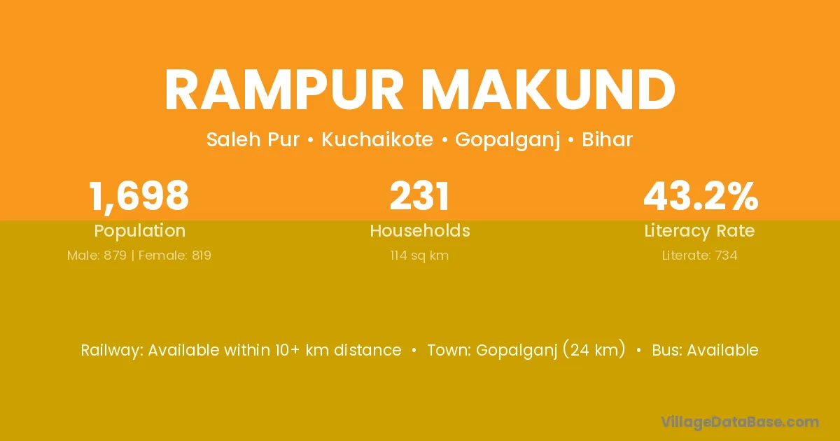 Gopalganj (24 km) is the nearest town to Rampur Makund village for major economic activities and is located approximately 24 km away.