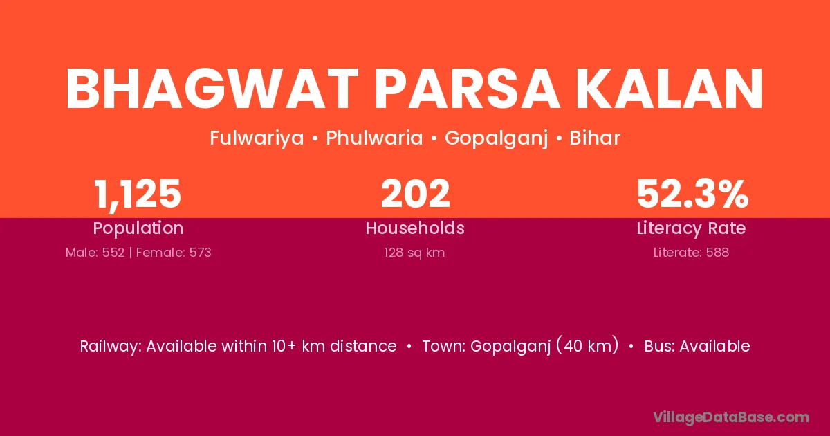 Gopalganj (40 km) is the nearest town to Bhagwat Parsa Kalan village for major economic activities and is located approximately 40 km away.