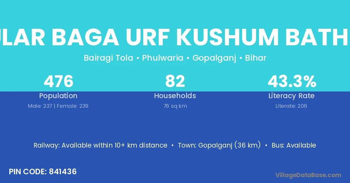 Gular Baga Urf Kushum Bathua village has a total population of 476 people, of which 237 are males and 239 are females.