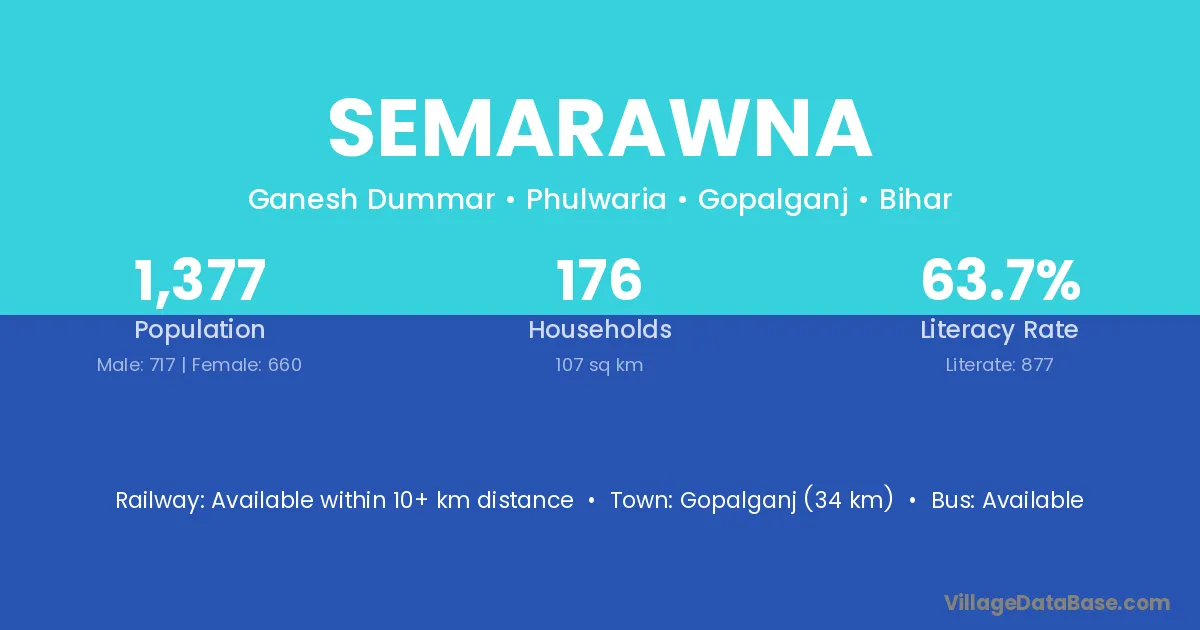 Gopalganj (34 km) is the nearest town to Semarawna village for major economic activities and is located approximately 34 km away.