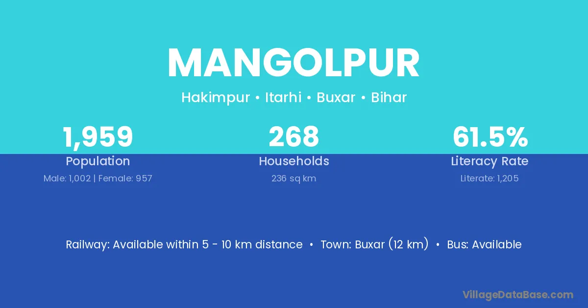 Barauli (10 km) is the nearest town to Mangolpur village for major economic activities and is located approximately 10 km away.