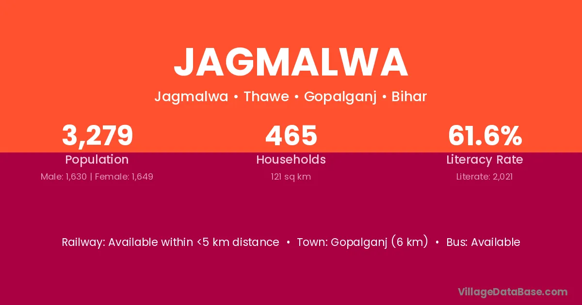 Gopalganj (6 km) is the nearest town to Jagmalwa village for major economic activities and is located approximately 6 km away.