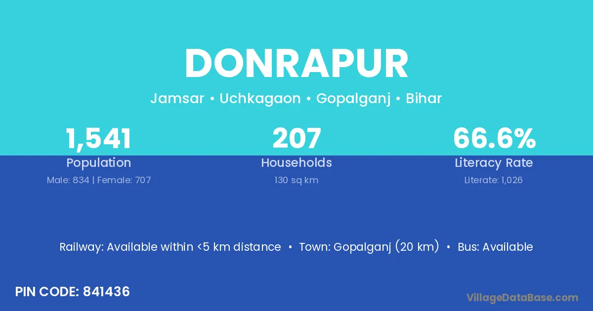 Gopalganj (20 km) is the nearest town to Donrapur village for major economic activities and is located approximately 20 km away.