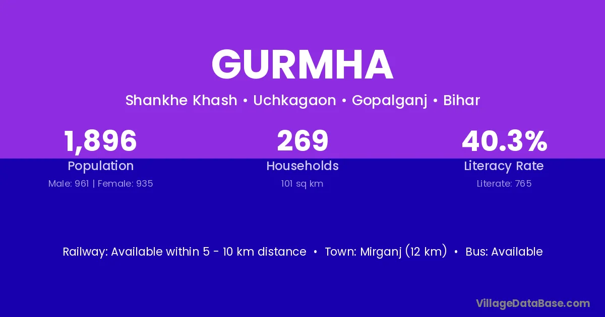 Mirganj (12 km) is the nearest town to Gurmha village for major economic activities and is located approximately 12 km away.