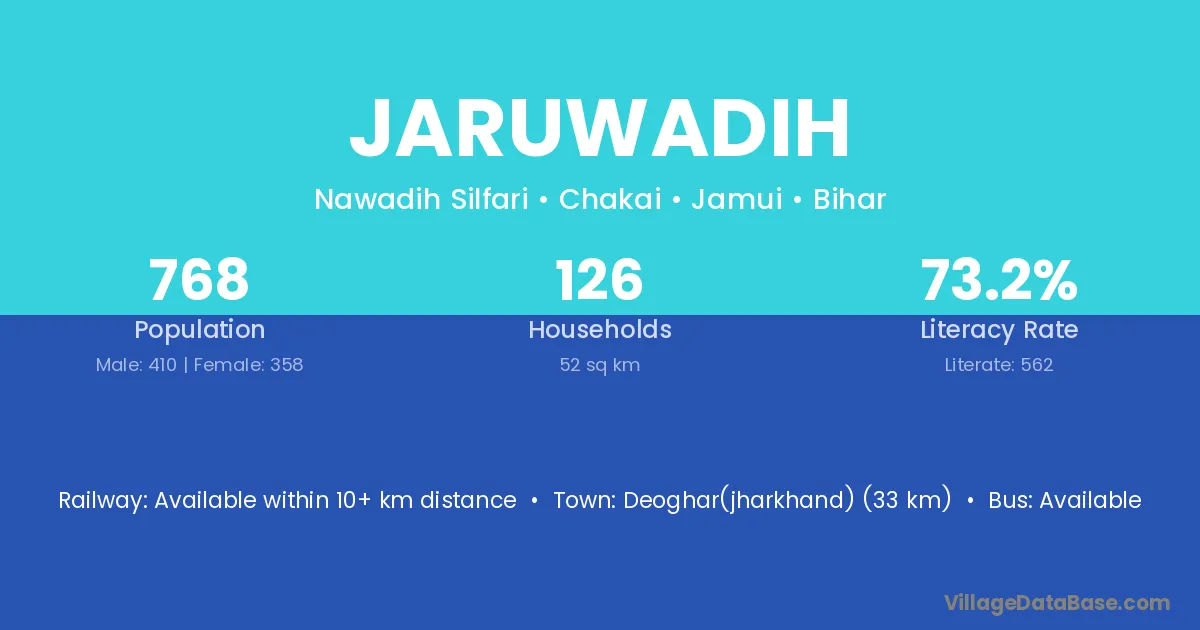 Jaruwadih village has a total population of 768 people, of which 410 are males and 358 are females.