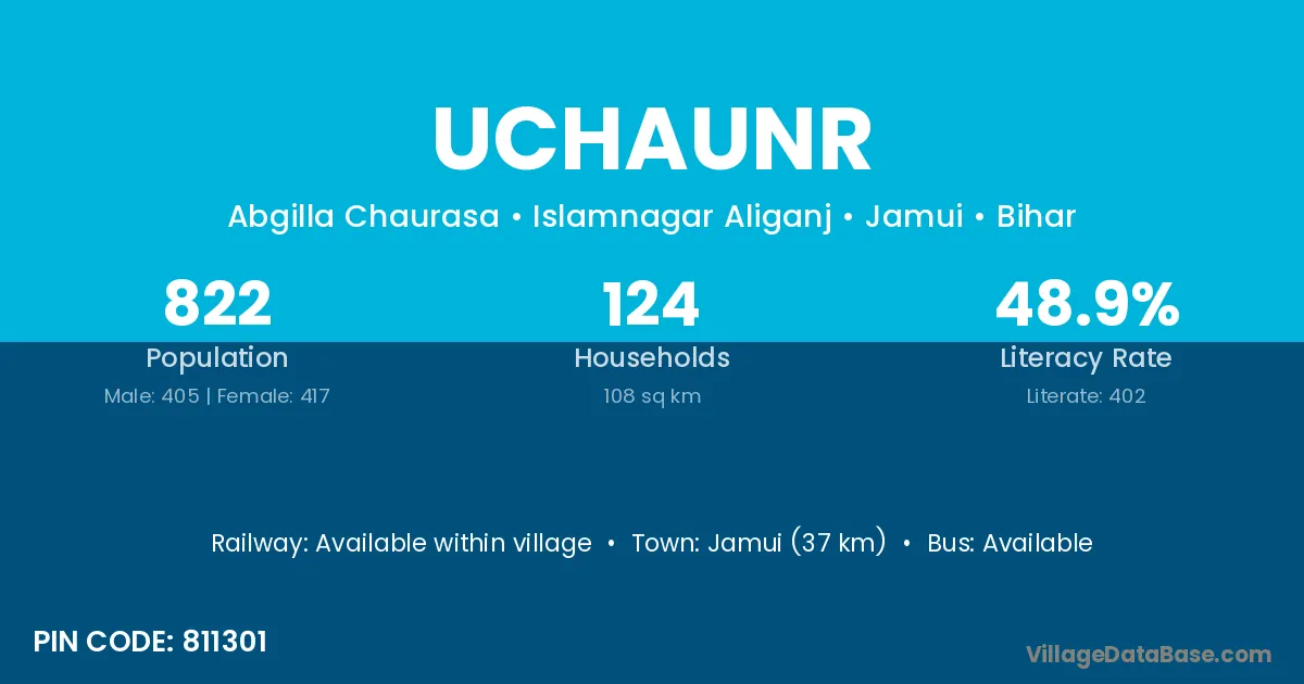 Jamui (37 km) is the nearest town to Uchaunr village for major economic activities and is located approximately 37 km away.