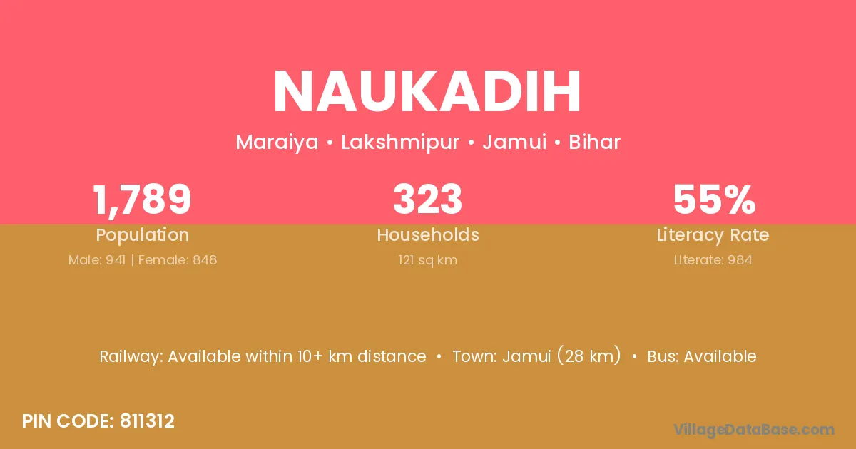 Jamui (28 km) is the nearest town to Naukadih village for major economic activities and is located approximately 28 km away.