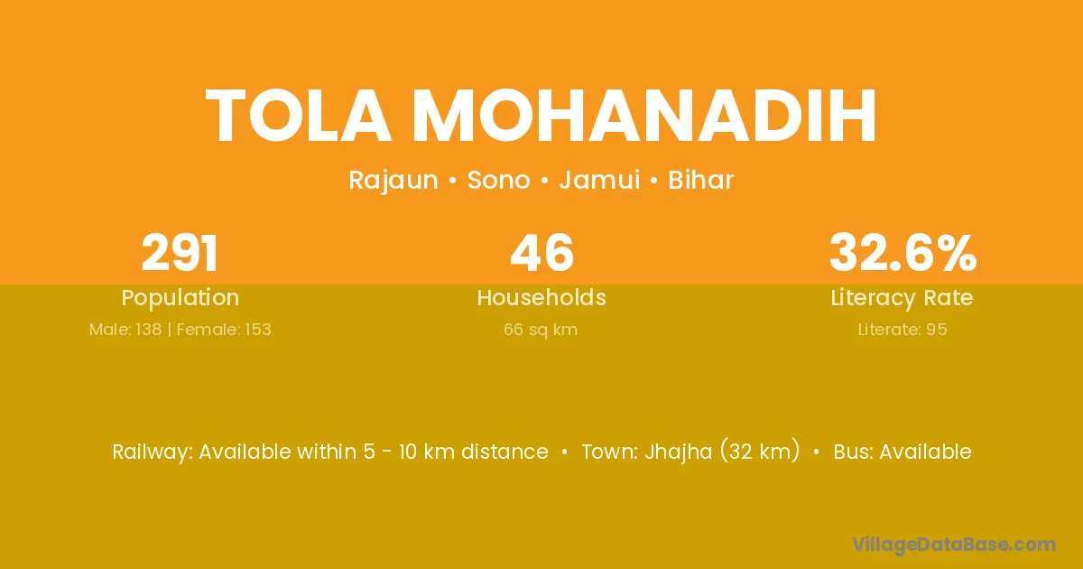 Tola Mohanadih village has a total population of 291 people, of which 138 are males and 153 are females.