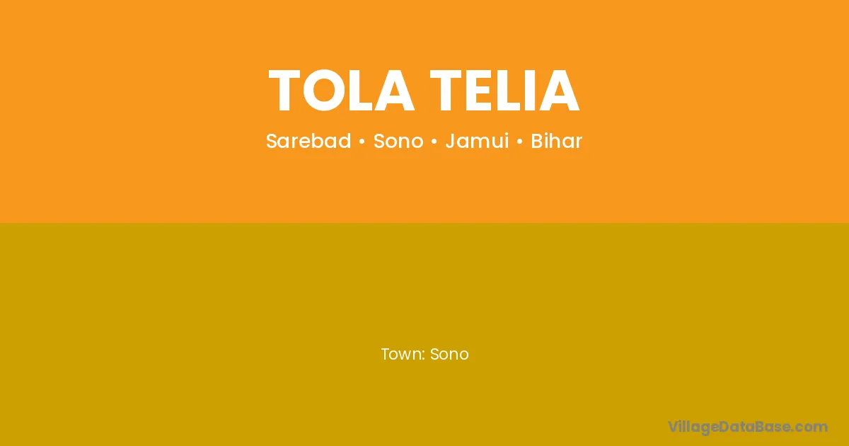 Tola Telia village is located in the Sono Subdivision of the Jamui district in Bihar .