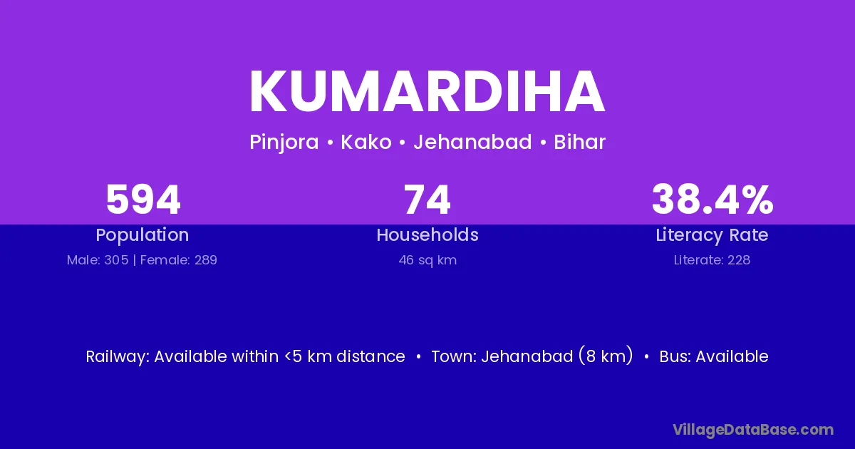 Jehanabad (8 km) is the nearest town to Kumardiha village for major economic activities and is located approximately 8 km away.