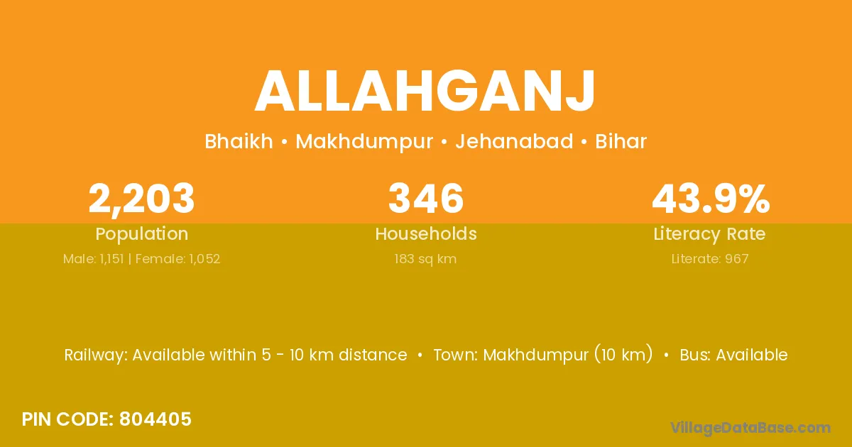 Makhdumpur (10 km) is the nearest town to Allahganj village for major economic activities and is located approximately 10 km away.
