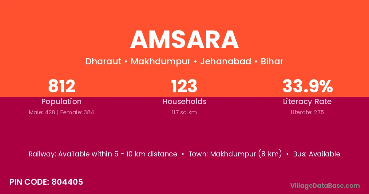 Makhdumpur (8 km) is the nearest town to Amsara village for major economic activities and is located approximately 8 km away.