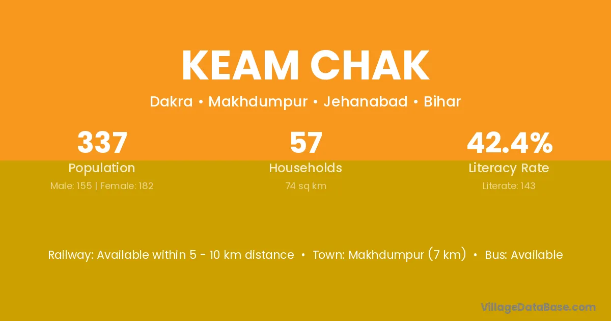 Makhdumpur (7 km) is the nearest town to Keam Chak village for major economic activities and is located approximately 7 km away.