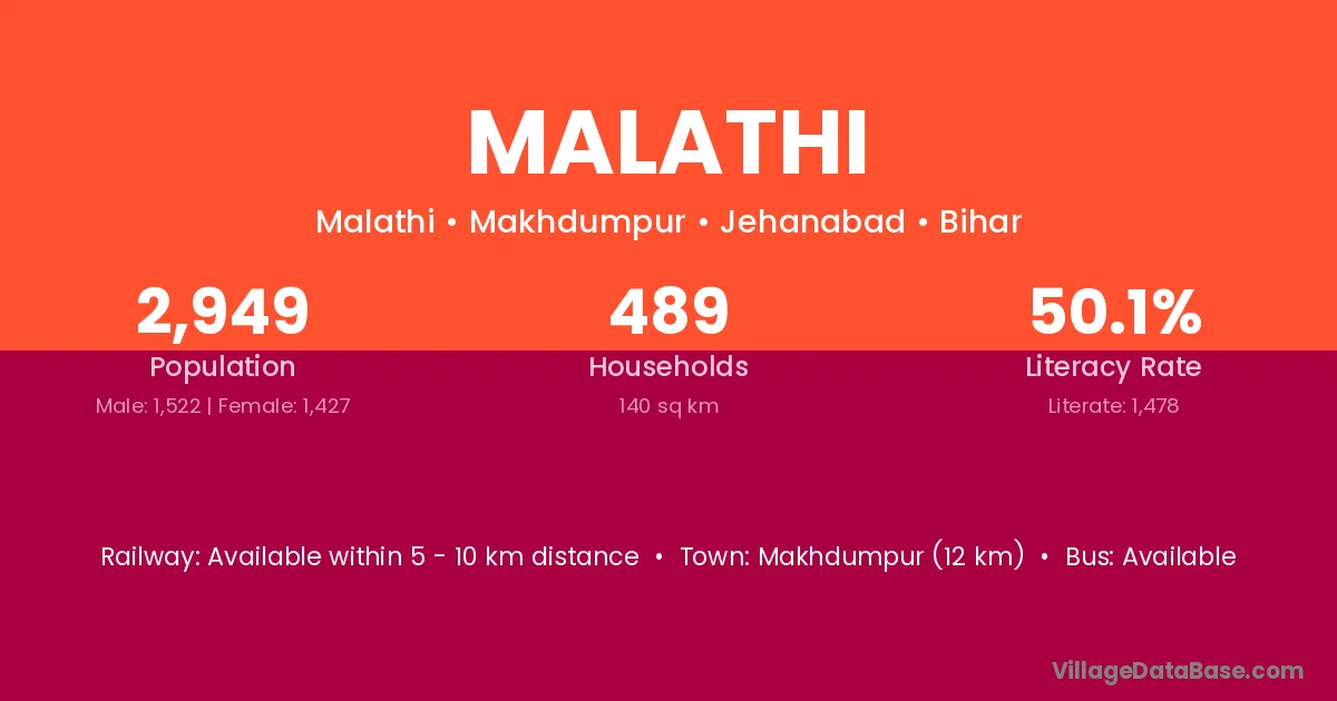 Makhdumpur (12 km) is the nearest town to Malathi village for major economic activities and is located approximately 12 km away.