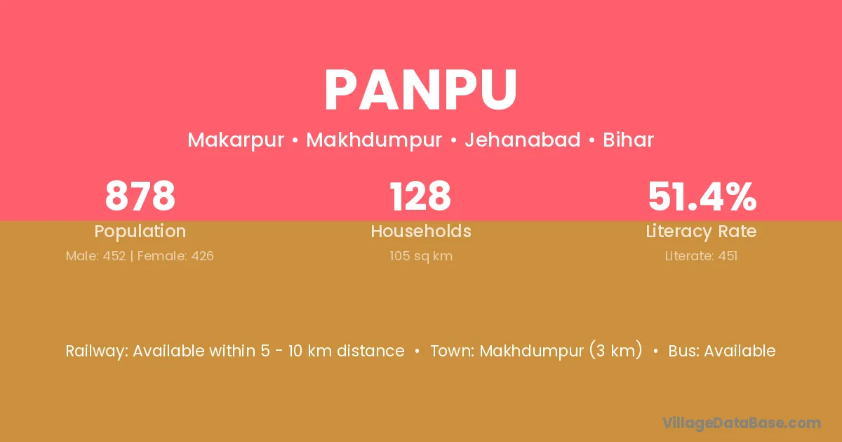 Makhdumpur (3 km) is the nearest town to Panpu village for major economic activities and is located approximately 3 km away.