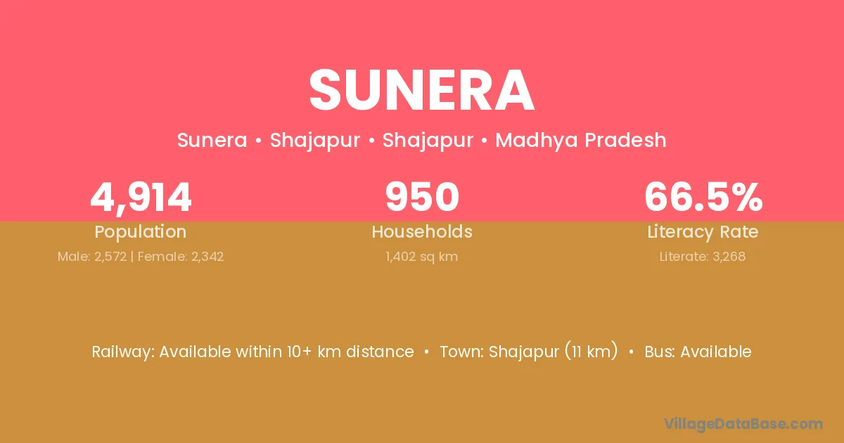 Makhdumpur (12 km) is the nearest town to Sunera village for major economic activities and is located approximately 12 km away.